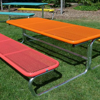 Die Spielplatz und Kindergarten Bänken und Bank-Tisch Kombinationen können in allen verschiedenen RAL Farben gestaltet werden.